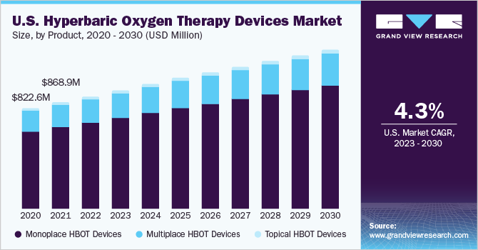 Image from: Hyperbaric Oxygen Therapy Devices Market Size, Share & Trends Analysis Report By Product (Monoplace, Multiplace, Topical HBOT Devices), By Application (Wound Healing, Infection Treatment, Gas Embolism), By Region, And Segment Forecasts, 2023 - 2030