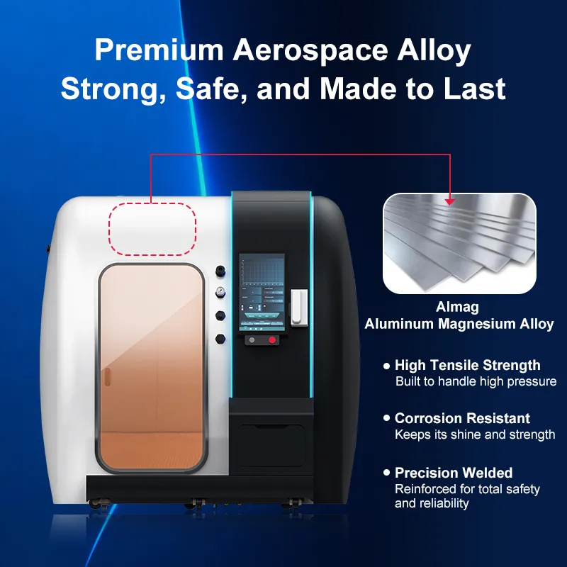 Made from aerospace-grade 5182H34 aluminum-magnesium alloy (305–380 MPa tensile strength), our hard-shell cabin is built to handle repeated pressure cycles without fatigue—its superior corrosion resistance and clean weldability create leak-proof joints and a long-lasting structure.