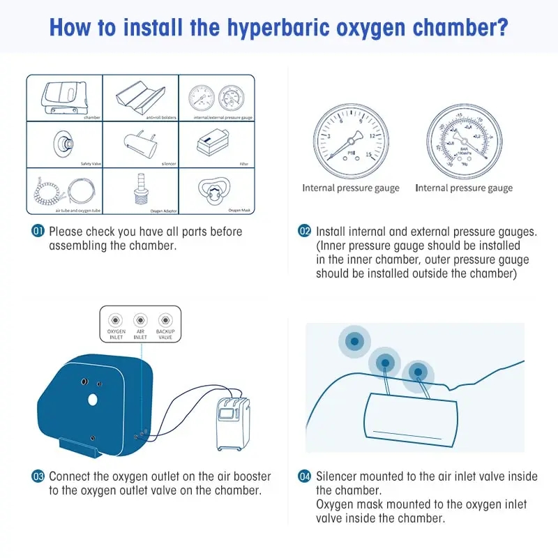 • Centros de bienestar : La oxigenoterapia hiperbárica a veces se incluye en los programas de bienestar para promover la salud y el bienestar general. Se cree que mejora el suministro de oxígeno a los tejidos y órganos, lo que podría ayudar en diversos procesos fisiológicos.