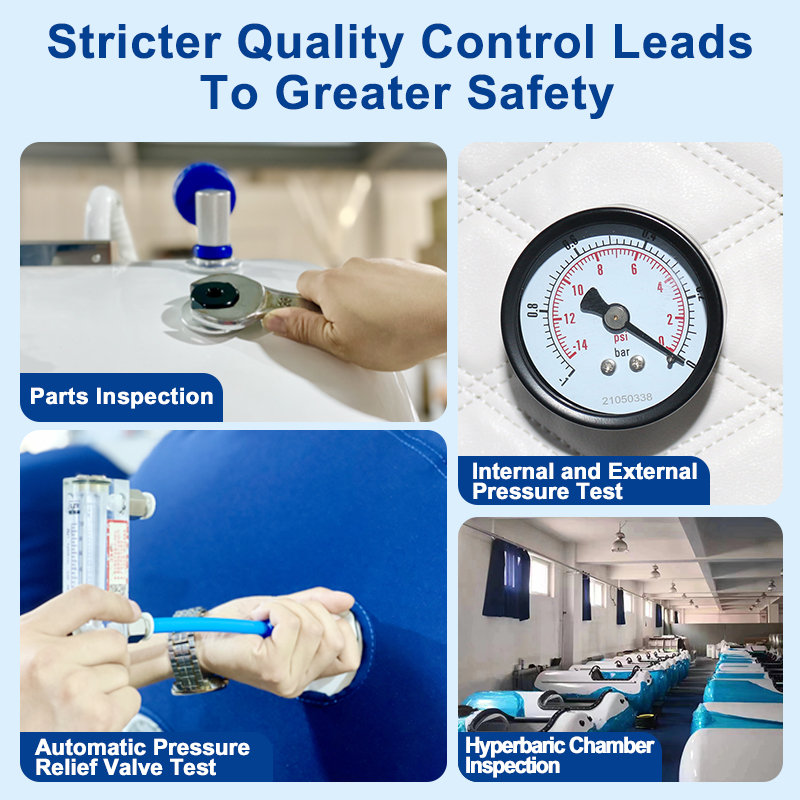 Todas nuestras cámaras de oxígeno hiperbárico están aprobadas por la FDA. Un botón de emergencia para liberar presión y un sistema automático de control de la presión del aire harán que disfrutes del tratamiento de forma segura.